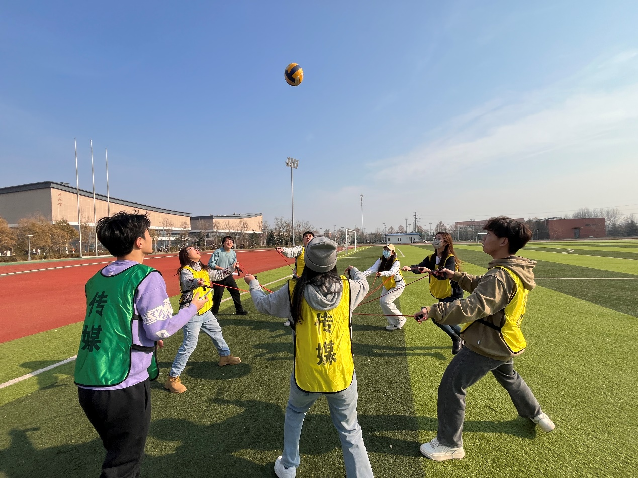 活动比赛项目,有鼓舞人心、踩气球、井字棋等项目,每个项目都设计了不同的挑战和难度,让参与者在挑战中不断提升自己。在活动开始之前,老师先组织同学们站成方队,按照男女比例随机分成七支队伍,挑选自己队伍的服装并穿好,然后一起做了活动前的热身运动。每支队伍对于各个项目经过多次的练习,团队内进行充分地讨论与优化,摸索到属于自己的最佳方案,例如,绿队在鼓舞人心项目上从最初只能垫一两个到最终垫十多个;白队在踩气球项目上采取保守战略,最终赢得该项目的第一名;蓝队在井字棋项目上采取“田忌赛马”的策略,赢得该项目的第一名。