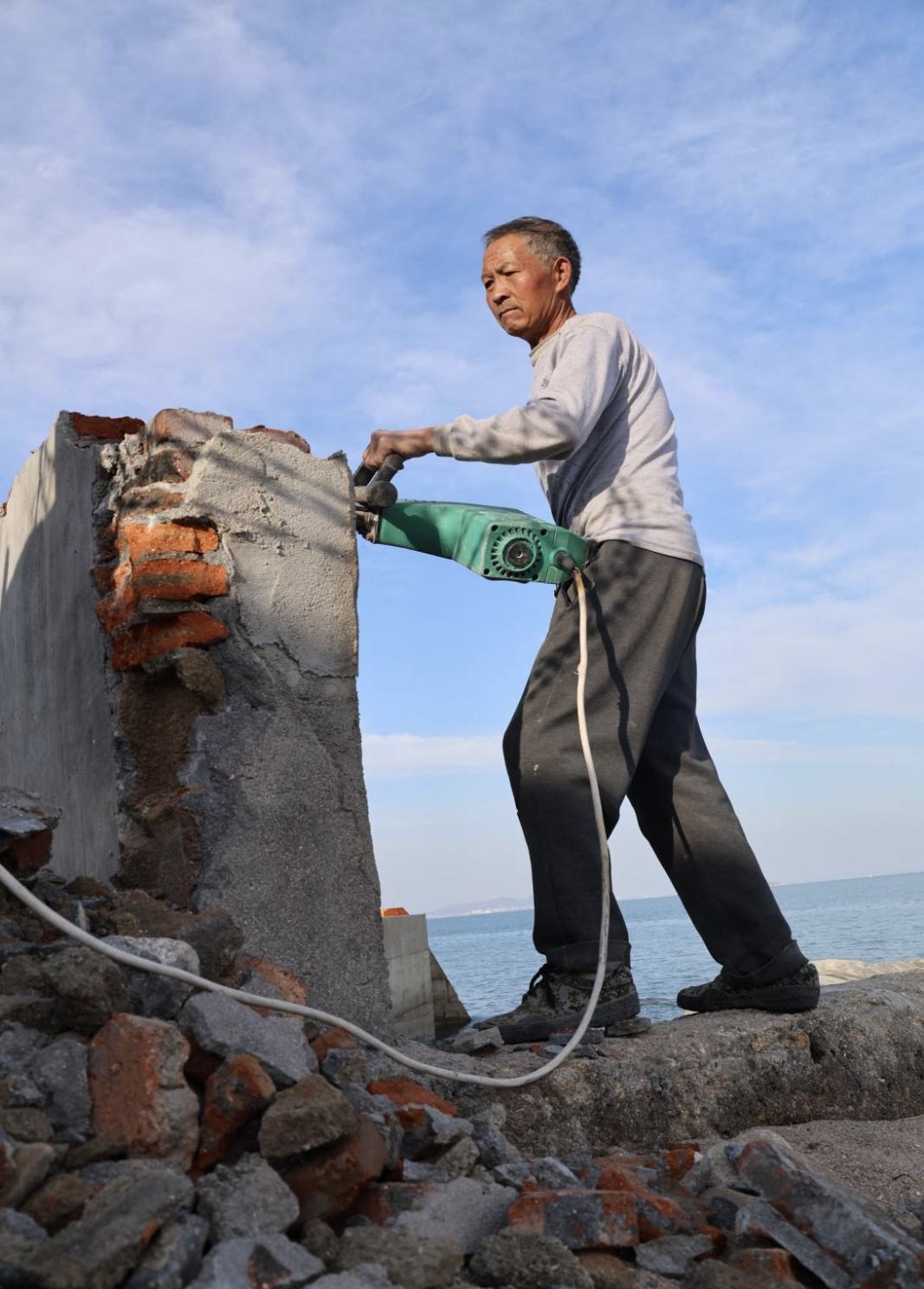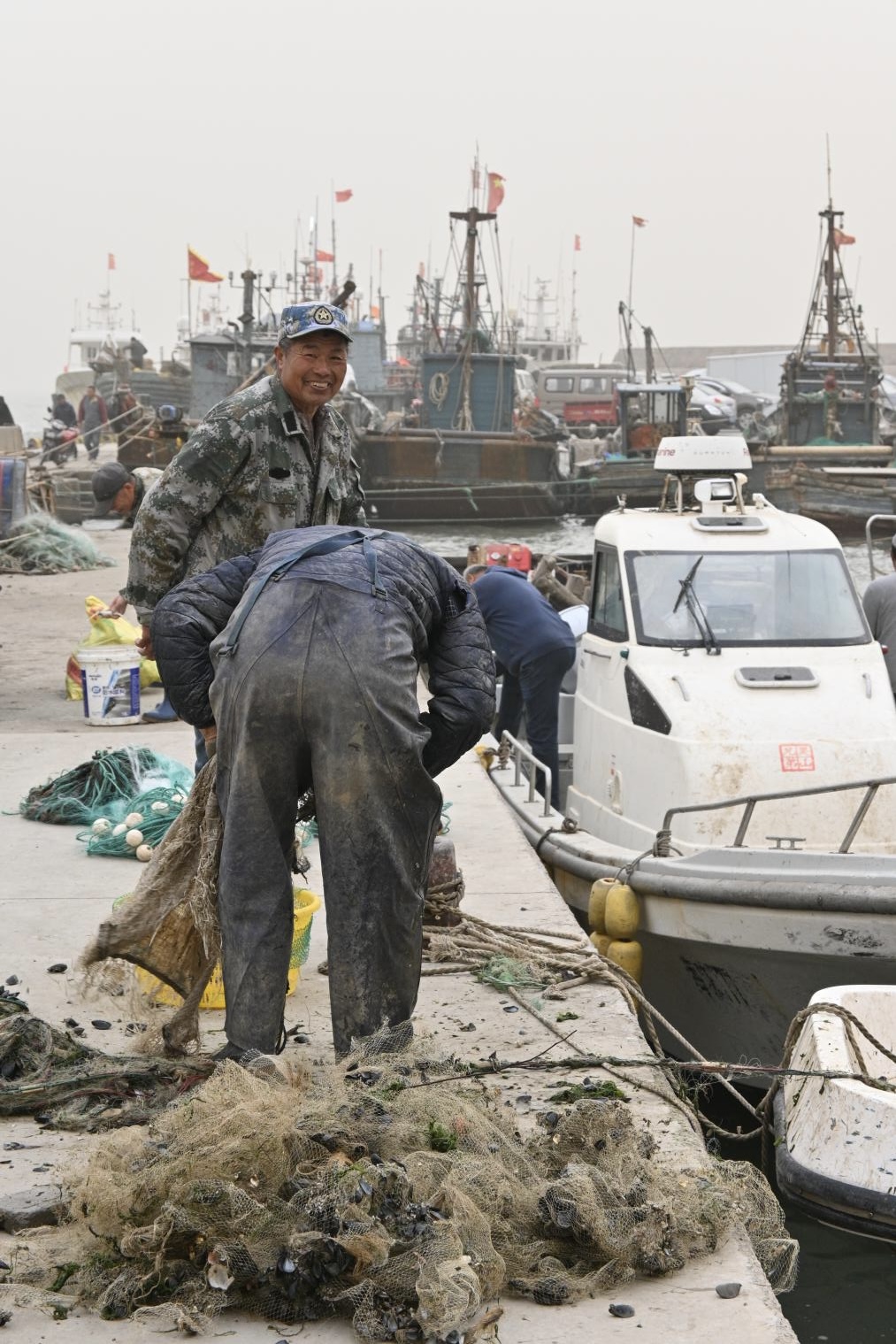 在“快门律动 奏响劳动乐章”摄影主题展示中,劳动的身影在光影中定格,也在同学们的镜头里熠熠生辉:秋日清晨的林荫大道上,环卫工人默默扫起落叶,为校园铺就整洁之路;工地一角,年长的建筑工人手持电钻,目光坚定,在尘土飞扬中书写着岁月的坚韧;渔港码头上,渔民们或蹲身理网,或满脸笑意地与同伴交谈,身后是一艘艘即将远航的渔船。这些画面真实、生动而有力,展现着劳动者平凡中的伟大,也承载着拍摄者们对劳动精神的敬意与思索。