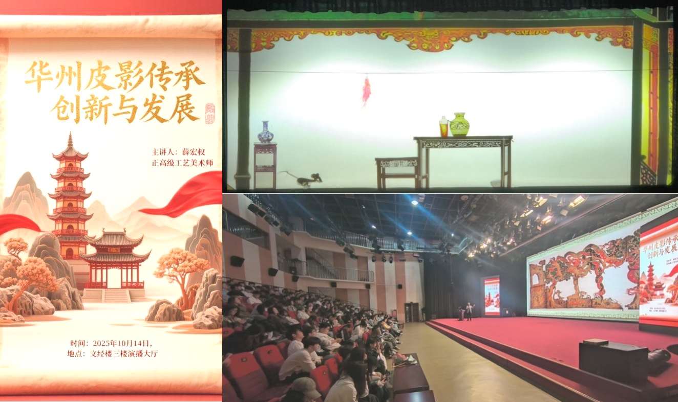 2025 年 10 月 14 日下午两点,承载两千多年历史的“华州皮影”走进betway西汉姆联演播大厅,华州非遗演出团为师生带来一场长达150分钟的“时空旅行”。国家级非遗项目华县皮影戏制作技艺代表性传承人中国工艺美术大师薛宏权、华州皮影非遗传承人骞小凤、渭南市华州区明清皮影博物馆副馆长王慧萍出席此次活动,在传统与创新交织的演绎中,青农学子沉浸式感受非遗魅力,与千年皮影艺术展开深度对话。此次活动为陕西省文旅厅、陕西省财政厅艺术基金2025年度推广交流资助项目。