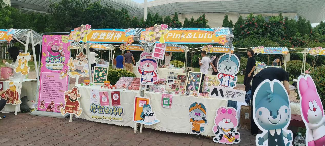 2025年7月18日,青岛国际啤酒节盛大开幕。啤酒节的崂山会场,公司动画专业师生原创IP“摩登财神”“pink&lulu”闪亮登场,成为现场的亮眼“顶流”。可爱的IP形象与现场IP交互美陈和原创的IP文创产品,用轻松幽默传递好运,凭借萌趣形象与独特生活哲学,瞬间成为全场焦点,引爆持续打卡热潮。