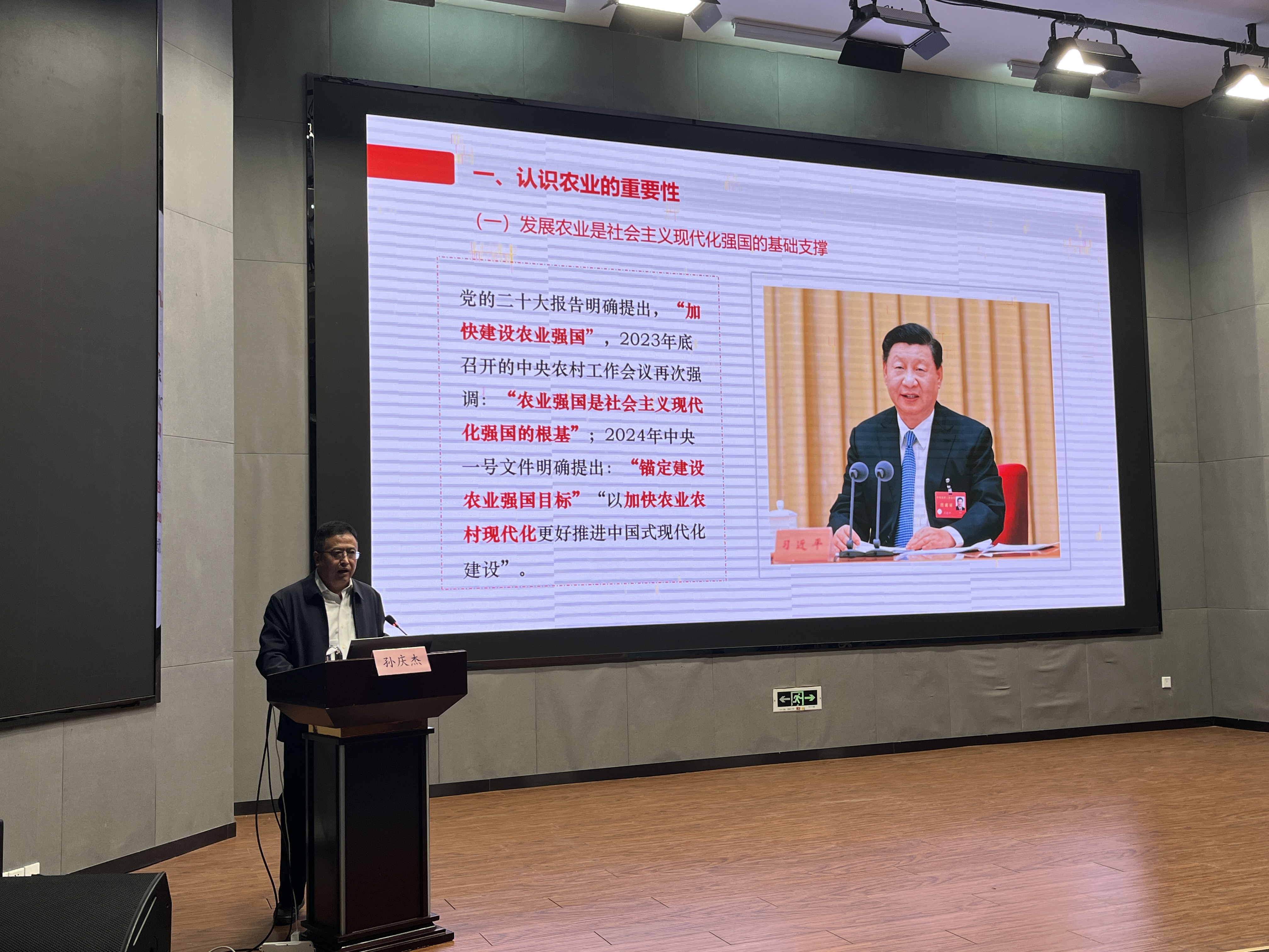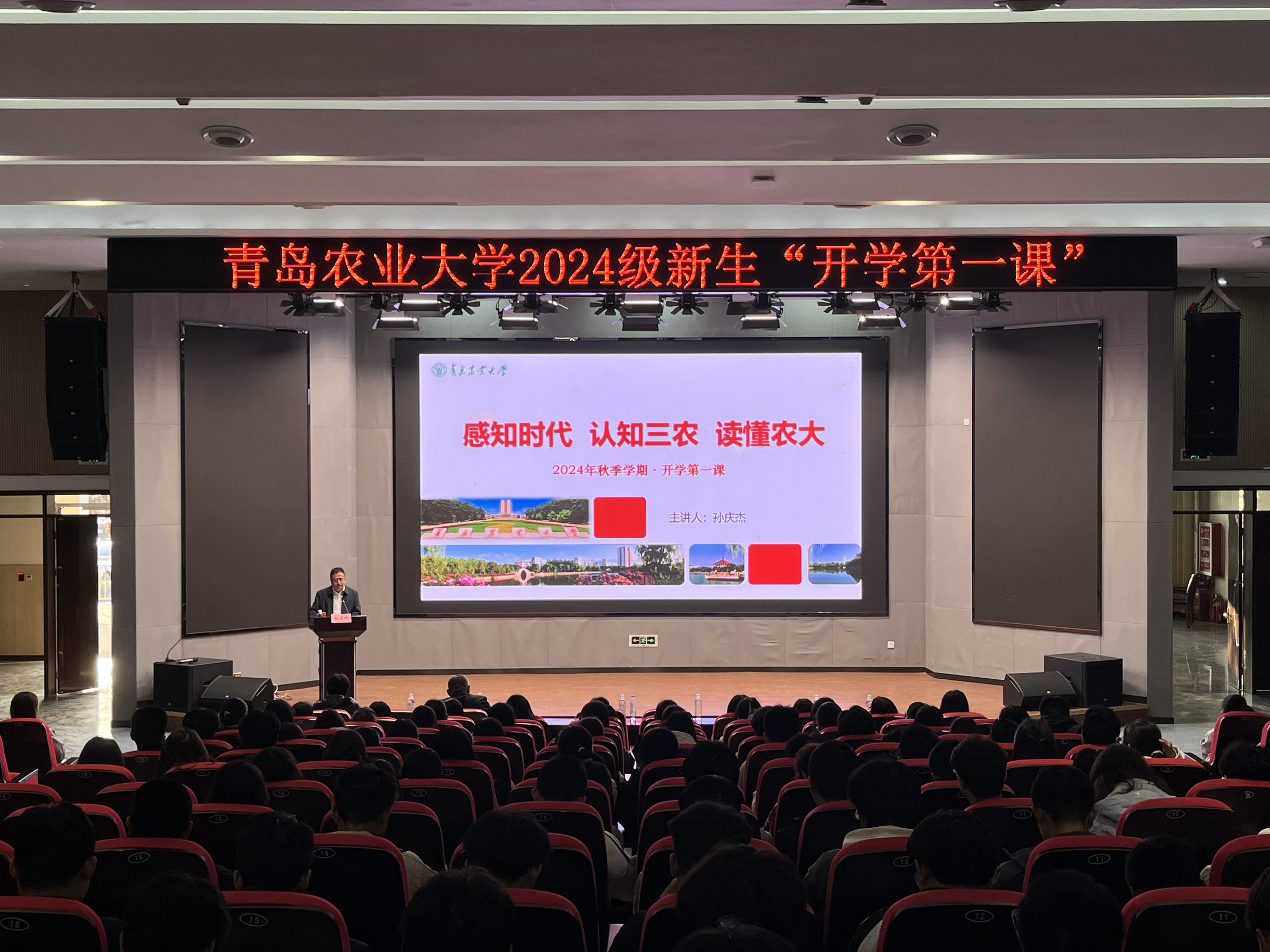 2024年10月29日下午,公司党委委员、副董事长孙庆杰以《感知时代 认知三农 读懂农大》为题,在博学楼报告厅为betway西汉姆联、农公司2024级新生讲授秋季学期“开学第一课”,两公司师生共同参会学习。