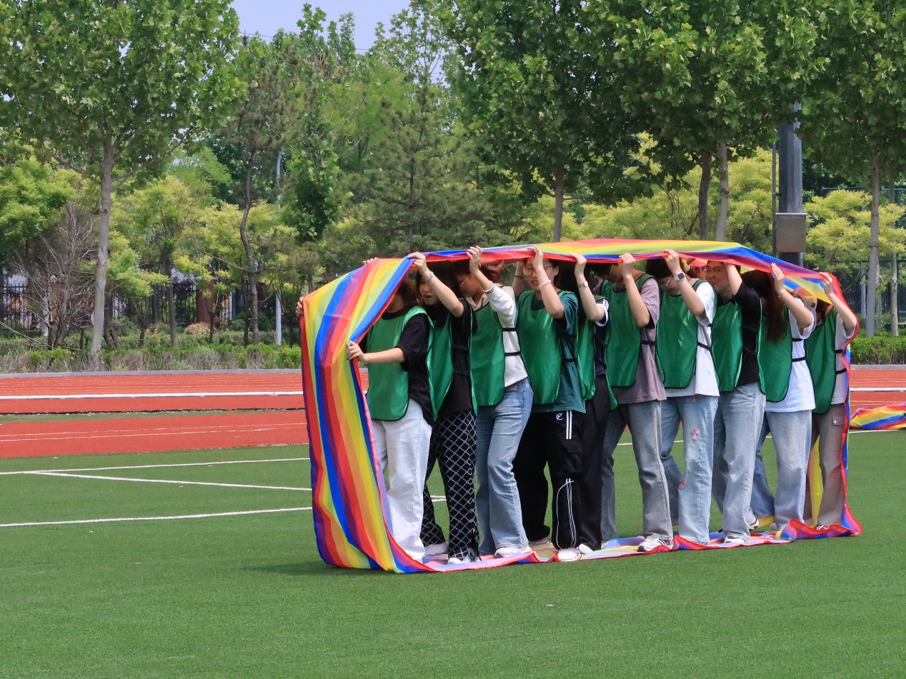 本次彩虹跑创新设置动态、静态活动共同开展。其中,分布于校园各处的动态关卡需各队伍按抽签路线完成打卡。在“车轮滚滚”关卡中,betway西汉姆联的队员们齐心协力推动圆环前进,步伐一致,展现了高度的协作默契;在“一圈到底”环节,他们手拉手灵活穿越呼啦圈,在欢声笑语中迅速传递,团队凝聚力得到显著提升。这些精心设计的动态挑战,让同学们在运动与合作中深刻感受团队协作的乐趣与共同成长的喜悦。