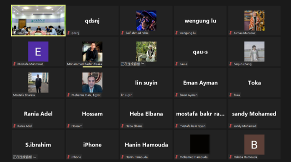 国际教育公司副经理李秋霞、国际合作交流处相关工作人员及员工助教代表出席开班仪式。共有来自埃及和摩洛哥的70余人通过网络参加了开营仪式。仪式由国际合作交流处副处长、国际教育公司副经理王磊主持。